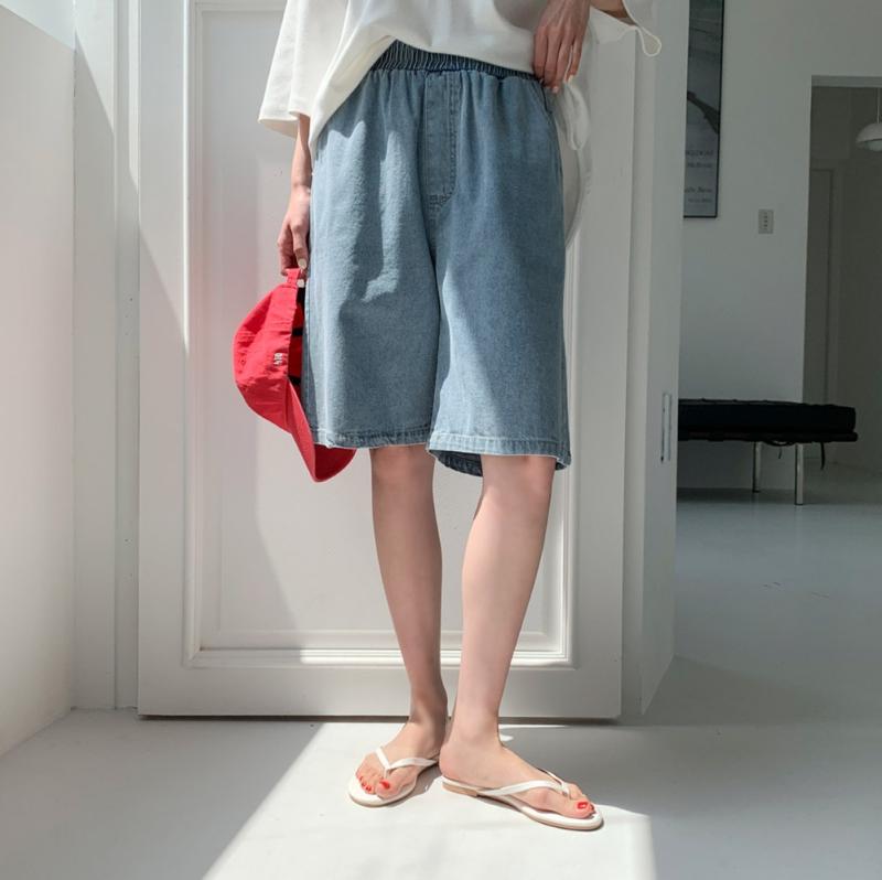 5부 밴딩 청 반바지